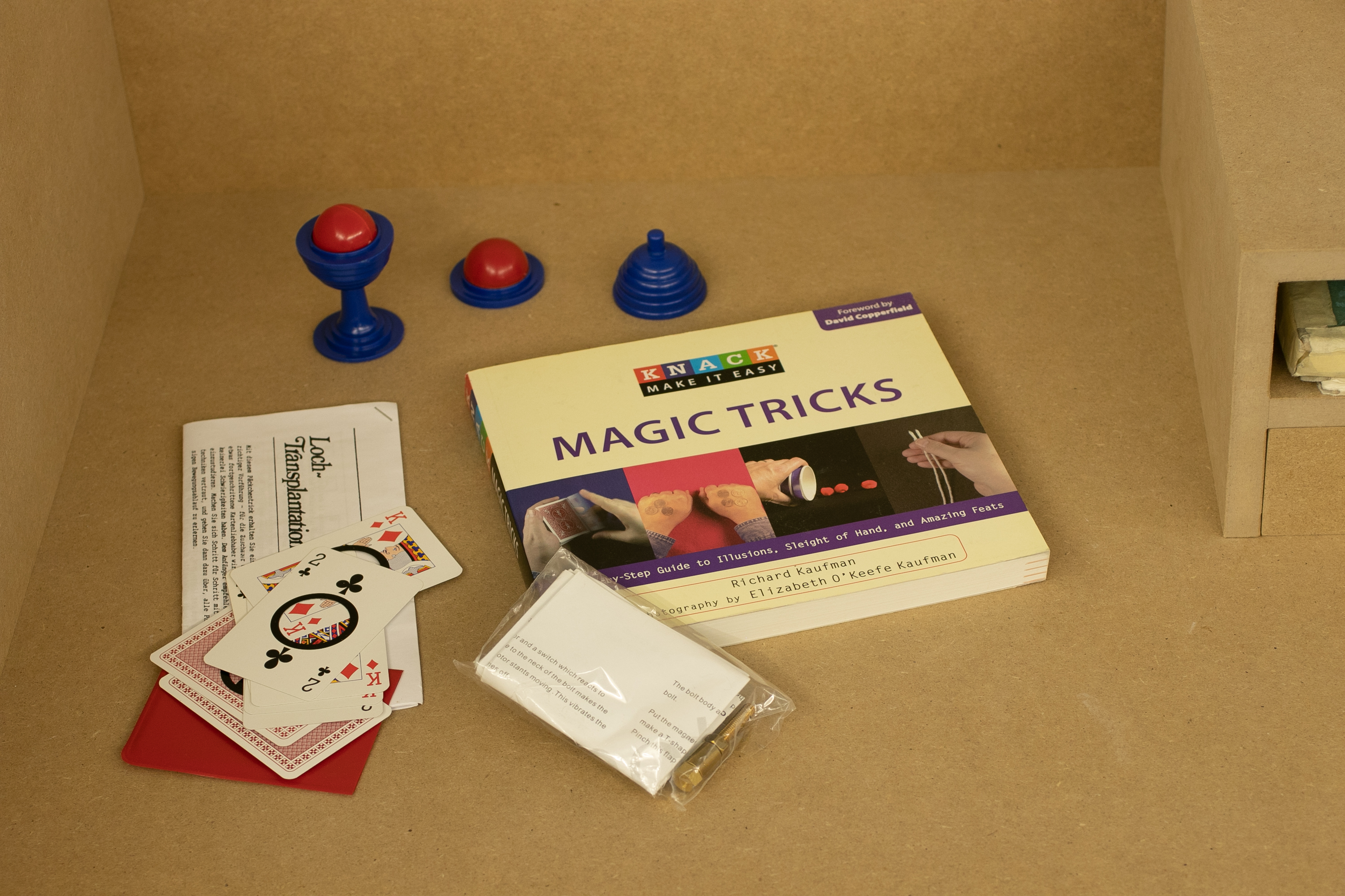 On the Subject of Tests is a multi-part project which recasts two twentieth-century intelligence tests, the Wechsler and Stanford-Binet Intelligence Scales, in a series of roles. It re-envisions the intelligence test kit as, in turn, an auto-archive, a rhetorical vessel, and a performance in a box. The project’s subsection, entitled Performing with Objects, uses artistic methods to reframe the test kits and their contents as props, highlighting both the materiality of the kits themselves, which are composed of toys, games, puzzles and booklets, and how these objects play a part in the performance of testing.